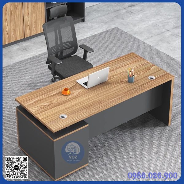 - Mặt bàn hình chữ nhật đẹp, hiện đại phù hợp với các quản lý, trưởng phòng, giám đốc, phần dưới được đóng theo nhu cầu lưu trữ với nhiều hộc tủ di động và các ngăn tủ đựng tài liệu, hồ sơ.